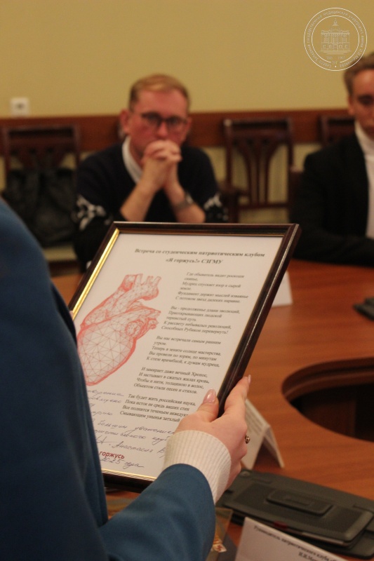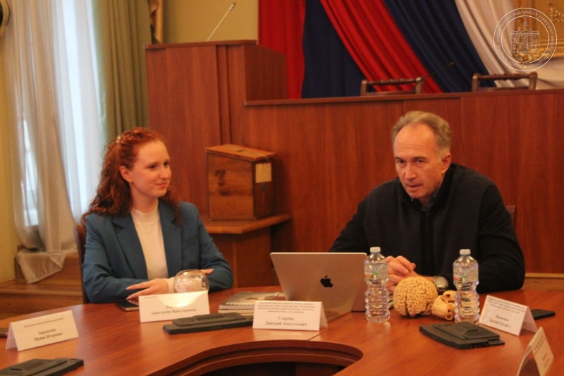 24 сентября в СЗГМУ им. И.И. Мечникова в рамках Всероссийского проекта «Я горжусь. Герои» активисты студенческого патриотического клуба «Я горжусь!» провели встречу с директором Института фундаментальной медицины нашего Университета, заведующим кафедрой морфологии человека, президентом Международного общества пластинаторов, членом правления Научного медицинского общества анатомов, гистологов и эмбриологов России, членом редколлегии журнала «Journal of Plastination», д.м.н., профессором Старчиком Д.А.